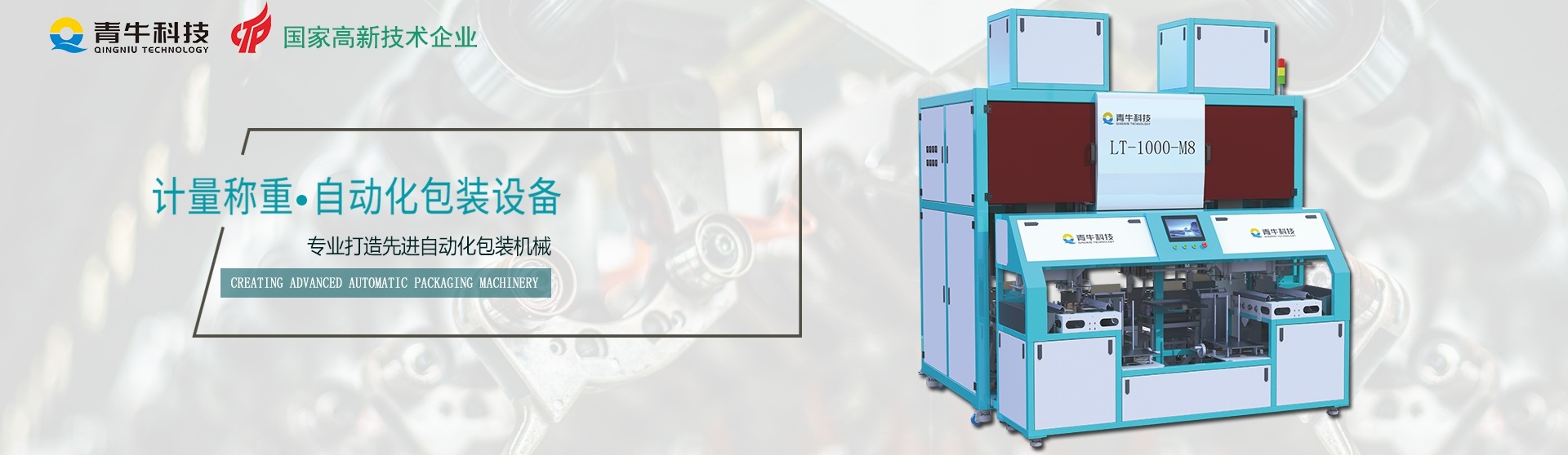 因為專注,所以專業(yè),漳州青牛科技有限公司將專注包裝領域、創(chuàng)造包裝精品、不斷致力于智能化包裝設備的研發(fā)制造,以更智能、高能、可靠的產品來滿足日新月異的市場需求。力爭成為國內包裝自動化技術的領頭者,為我國包裝自動化事業(yè)添磚加瓦。